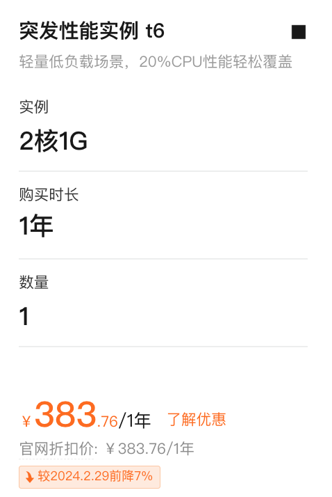 相关服务: 万宁ECS突发性能t6费用